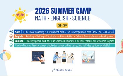 iCALC 2026 Math × English × Science Summer Camp (G1–G9) is here! From July 6 to July 31, 2026 (4 full weeks), we’re creating a fun, high-quality academic camp where kids learn, grow, and truly enjoy every day!
